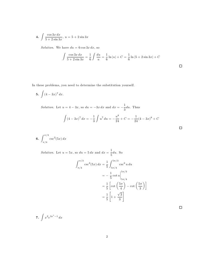 Lesson 28: Integration By Substitution (worksheet Solutions)