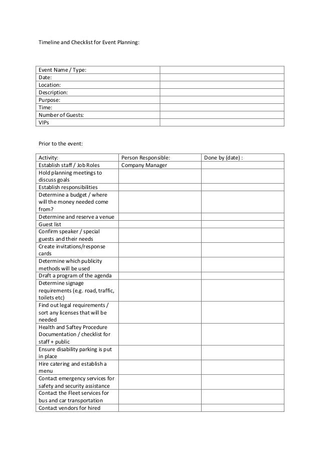 event checklist planning timeline